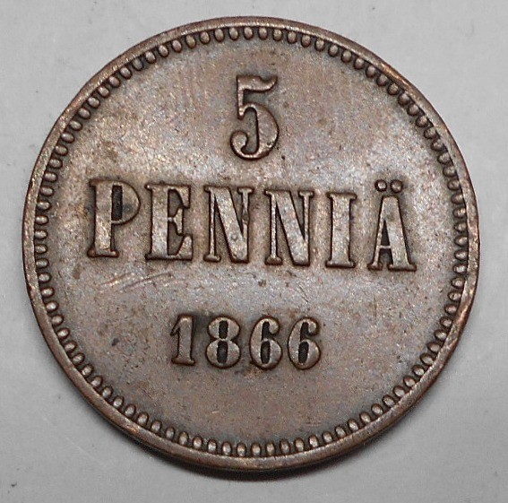 FINLAND 5 Pennia 1866
