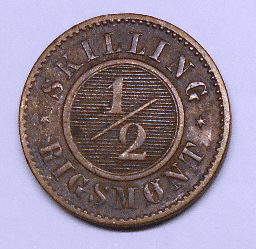 DENMARK 1/2 Skilling 1857