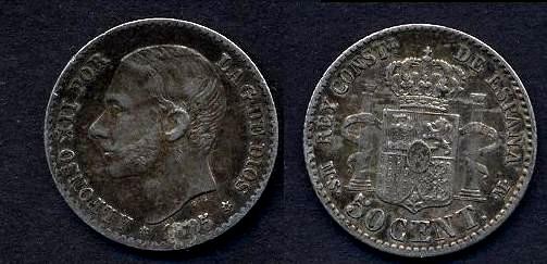 SPAIN 50 Centimos 1885 AG