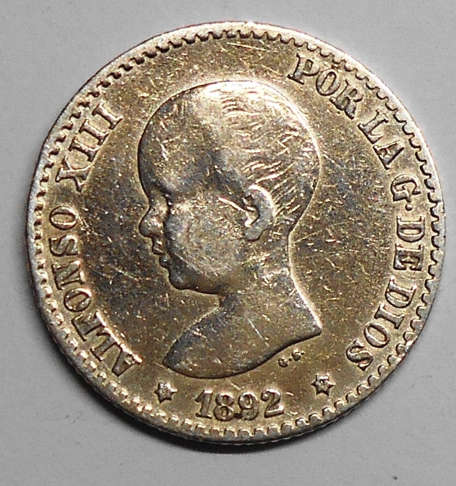 SPAIN 50 Centimos 1892 (22) AG