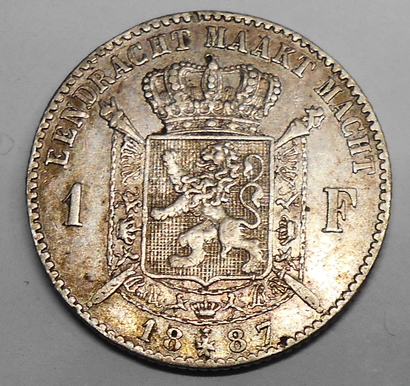 BELGIUM 1 Franc 1887 AG Der Belgen