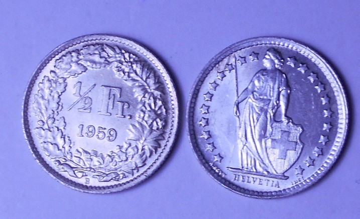 SWITZERLAND 1/2 Franc 1959 AG