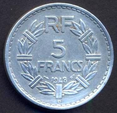 FRANCE 5 Francs 1948B Open 9 Lavrillier