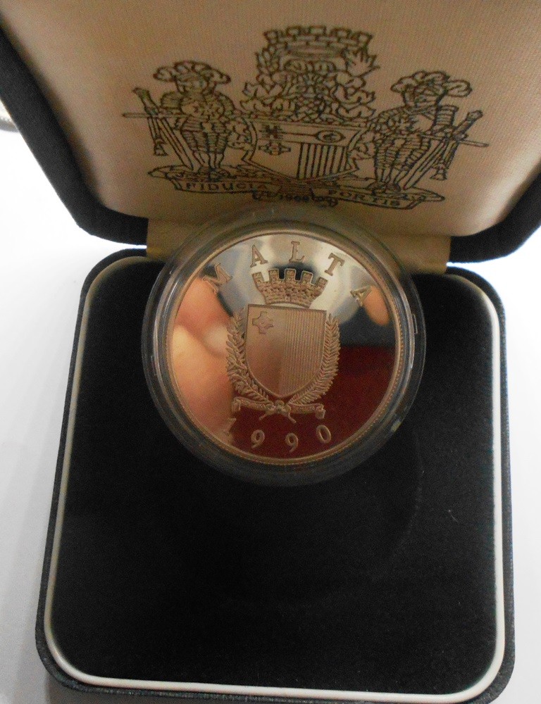 MALTA 5 Liri 1990 Visita Papa Giovanni Paolo II AG PROOF