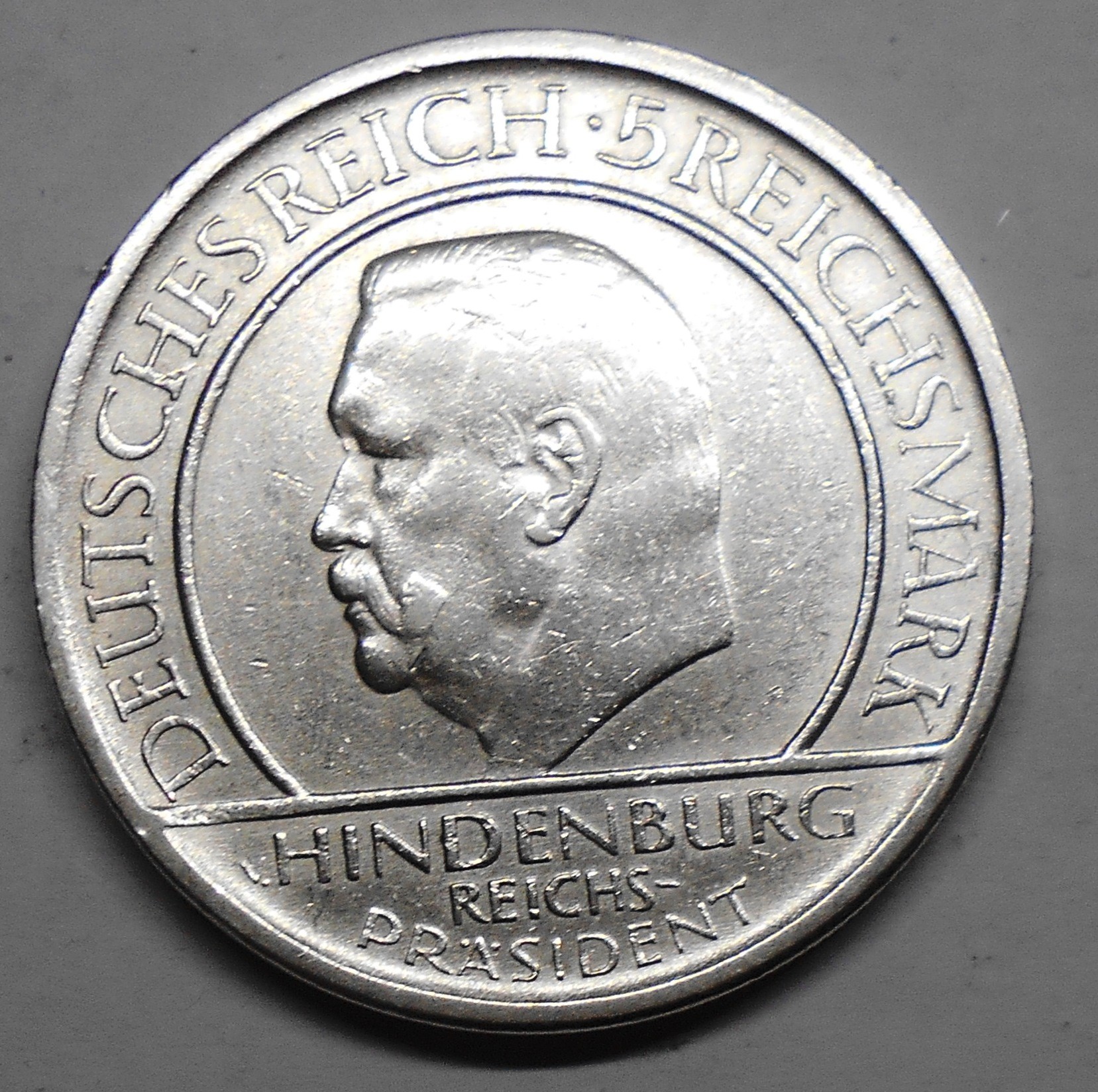 GERMANY WEIMAR REPUBLIC 5 Reichsmark 1929A Hindenburg AG