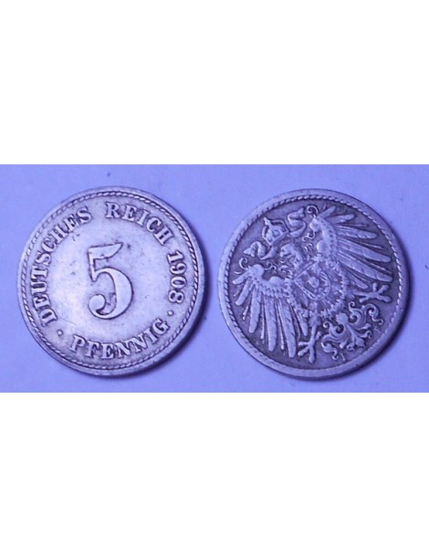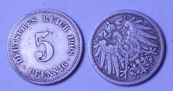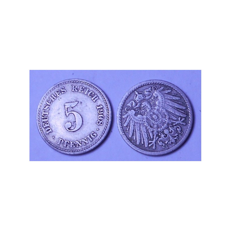 GERMANY EMPIRE 5 Pfennig 1908 F