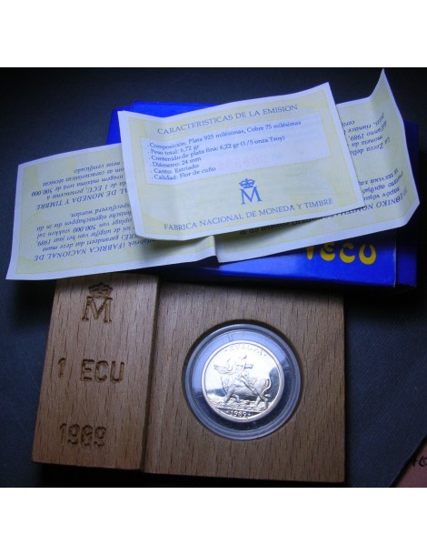 SPAIN 1 Ecu 1989 Europa AG PROOF