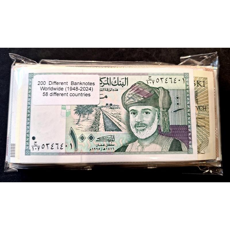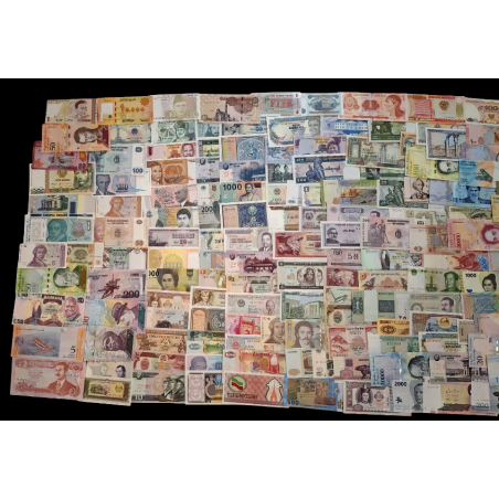 Lotto di 200 banconote mondiali differenti 58 paesi diversi FDS