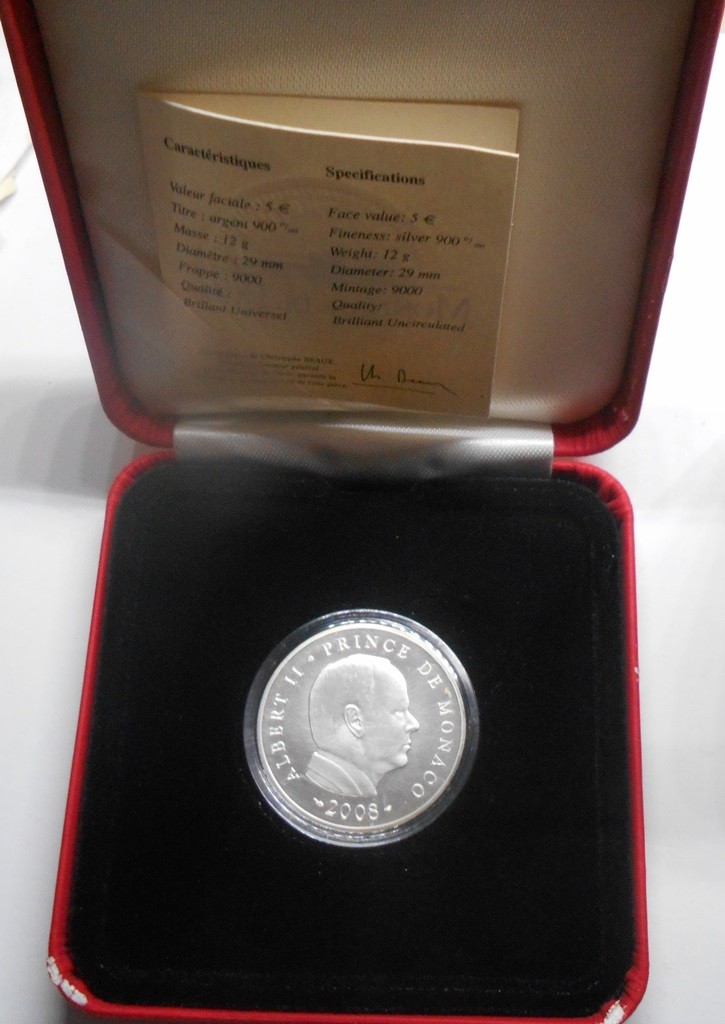 MONACO 5 Euro 2008 Prince Albert II , 50th Birthday AG