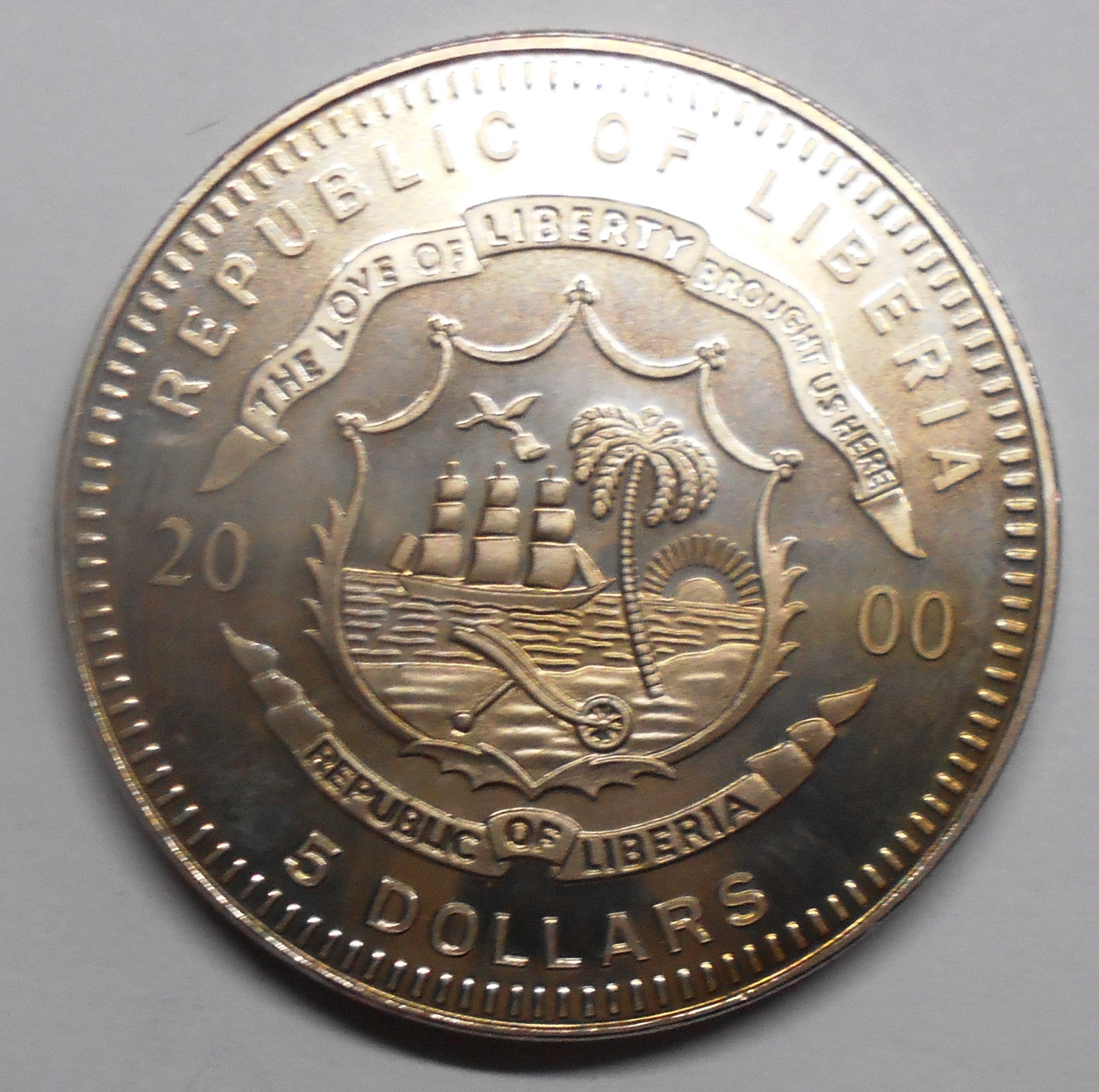 LIBERIA 5 Dollars 2000 Lion