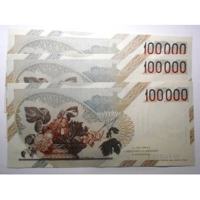 100.000 Lire Caravaggio 1° Tipo Lett. D Lotto n.3 banconote da mazzetta FDS