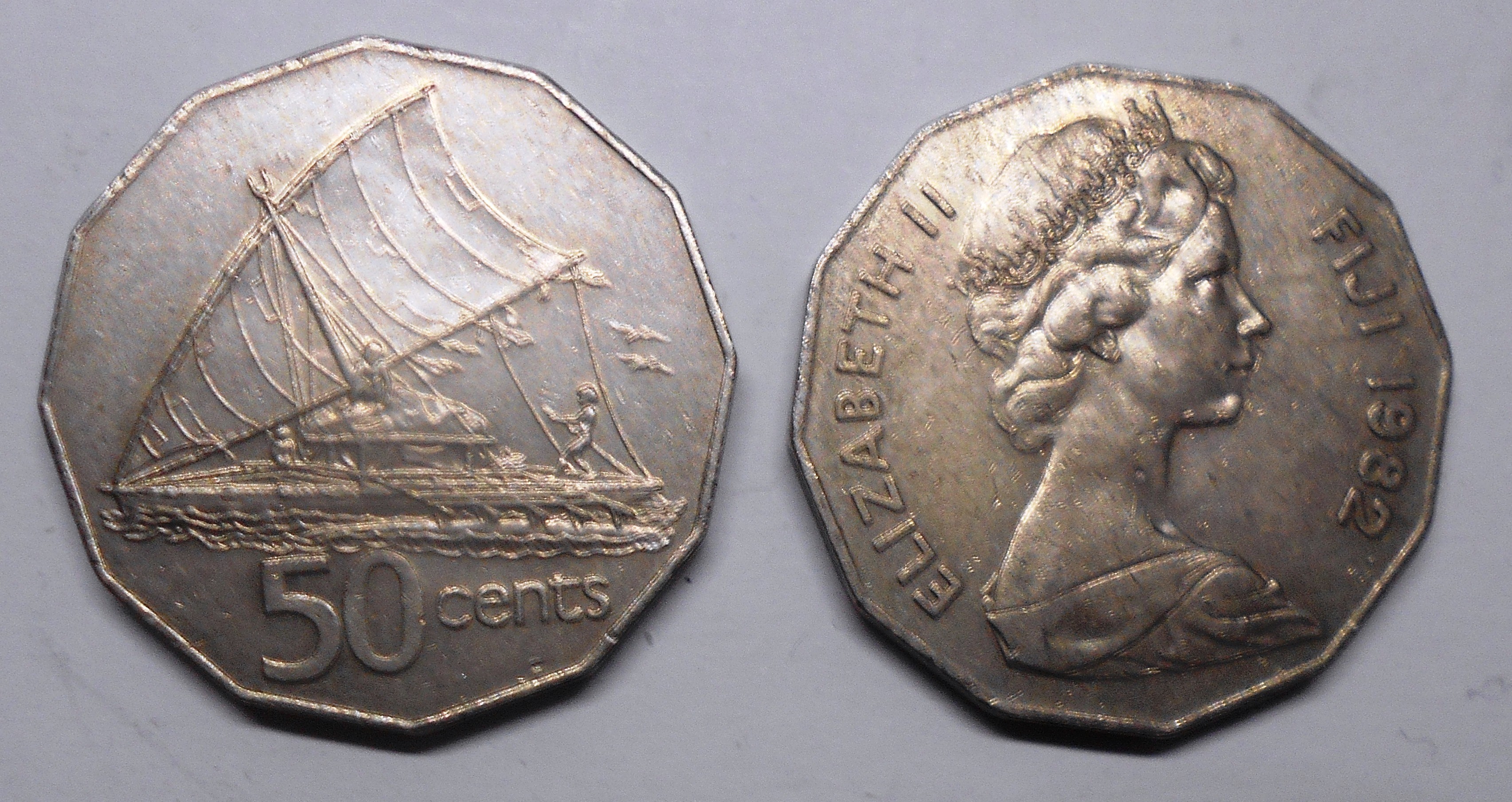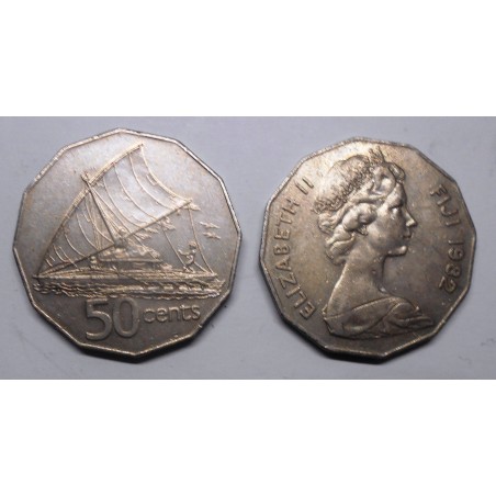 FIJI 50 Cents 1982 Sailing Canoa