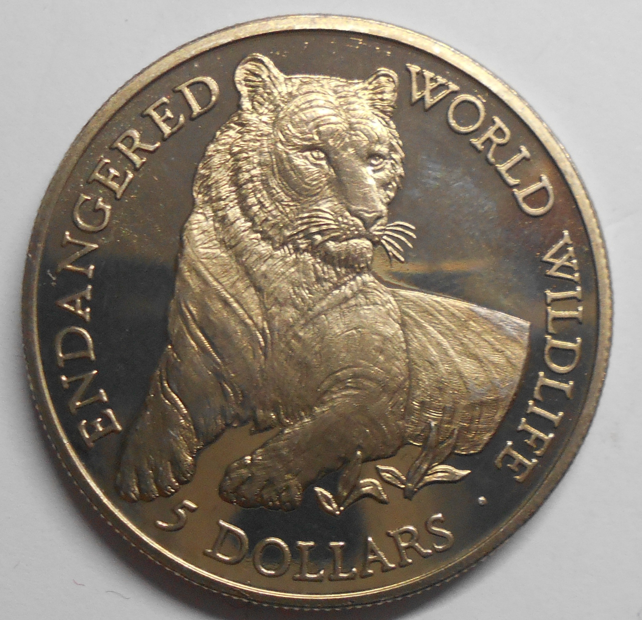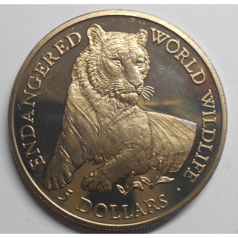 COOK ISLANDS 5 Dollars 1990 -Endangered Wildlife Series - Tiger