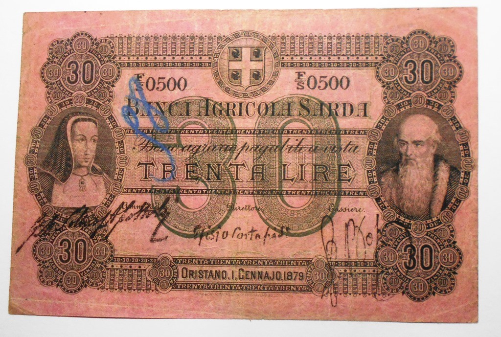 30 Lire 1874 CREDITO AGRICOLO INDUSTRIALE SARDO AGRARIO