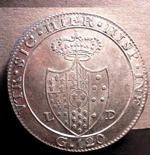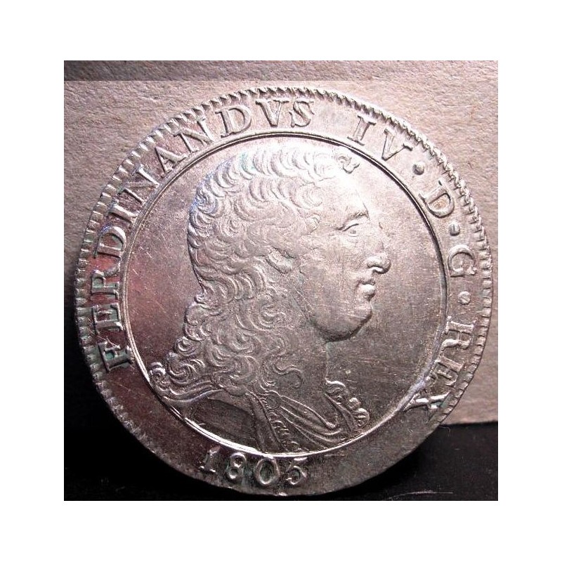 FERDINANDO IV Piastra 1805 capelli ricci Stemma grande
