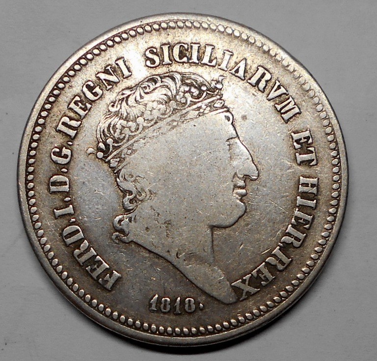 FERDINANDO I 1/2 Piastra 1818 collo lungo AG
