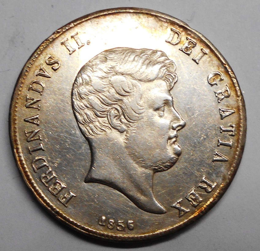 FERDINANDO II 1/2 PIASTRA 1856 AG (Variante R3 con 1 Invertito)