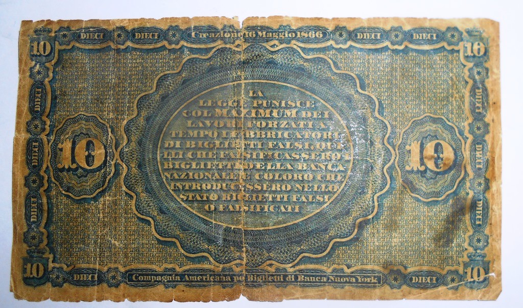 10 LIRE 12/06/1866 BANCA NAZIONALE NEL REGNO D’ITALIA