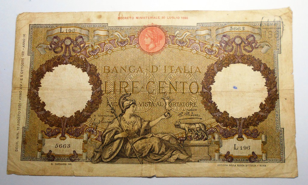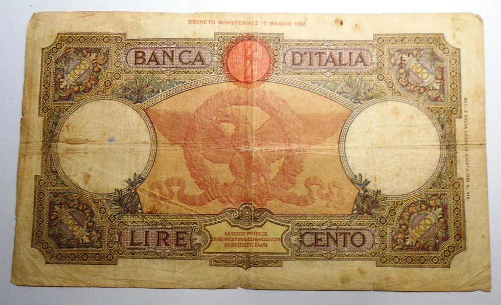 100 Lire Aquila Romana 18.8.1936 rara (R2)