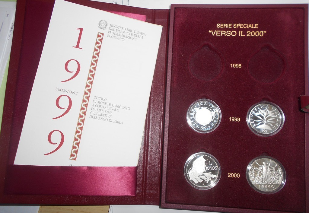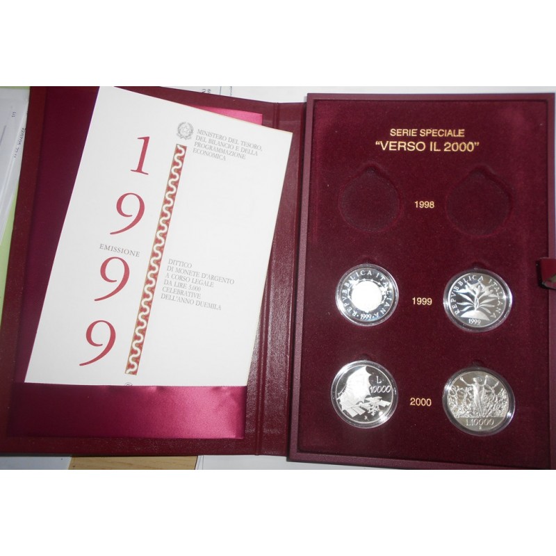 VERSO IL 2000 SET Dittico 5000 Lire 1999 + Dittico 10.000 LIre2000 AG PROOF