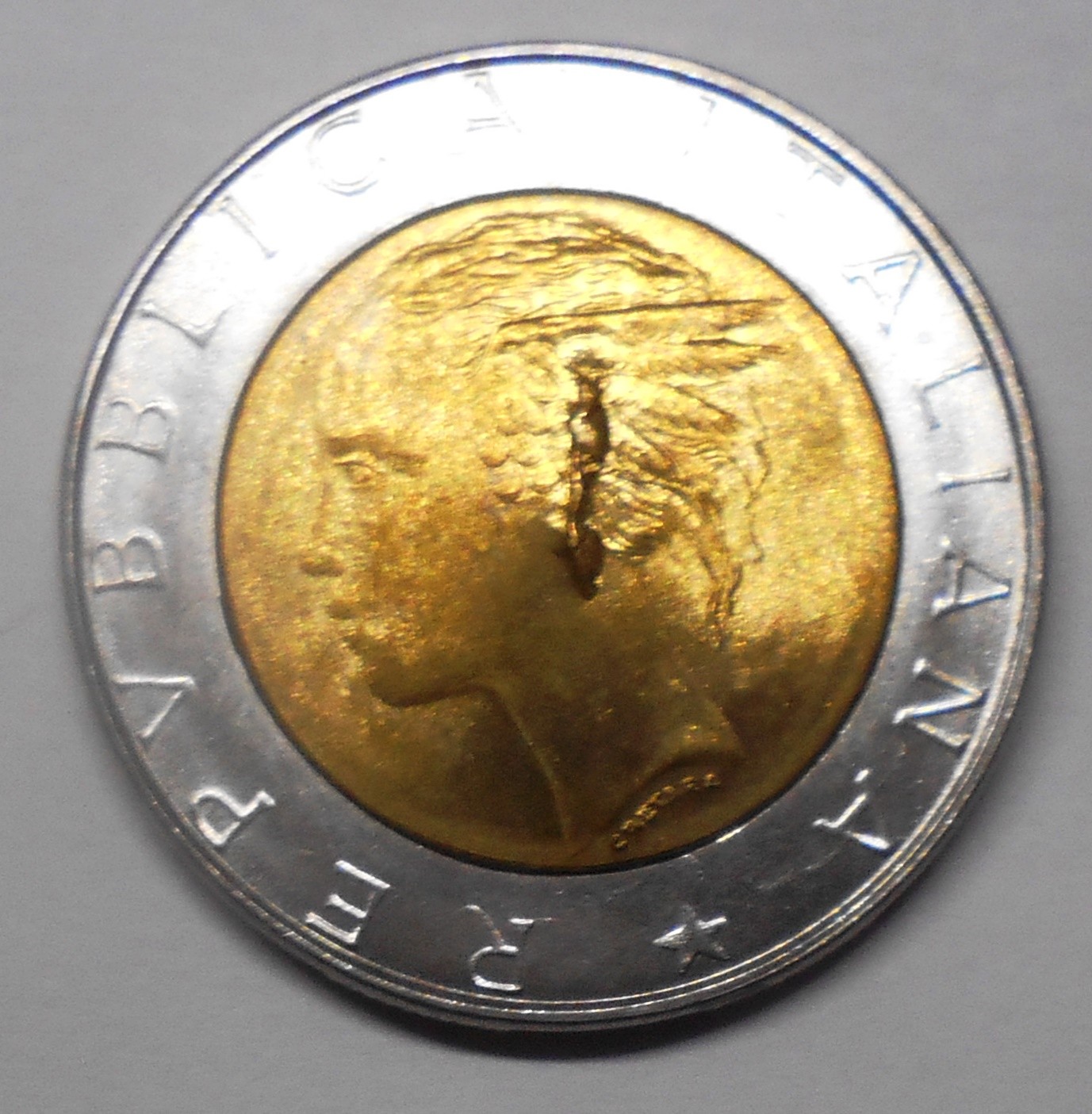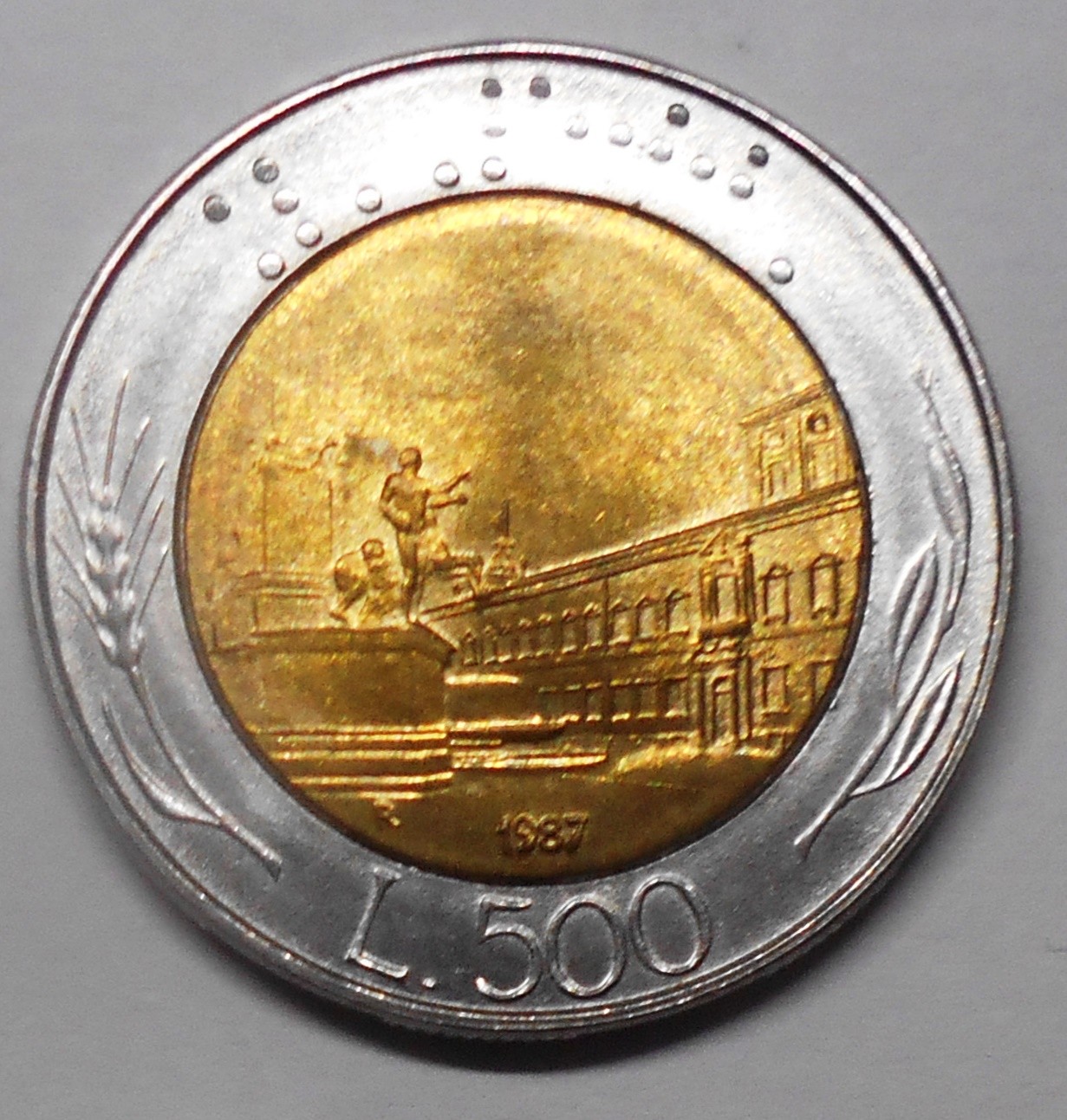 500 Lire 1987 eccedenza di metallo sui capelli FDC