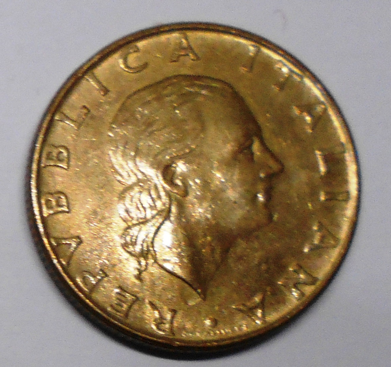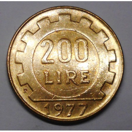 200 Lire 1977 mezza luna sotto il collo in incuso