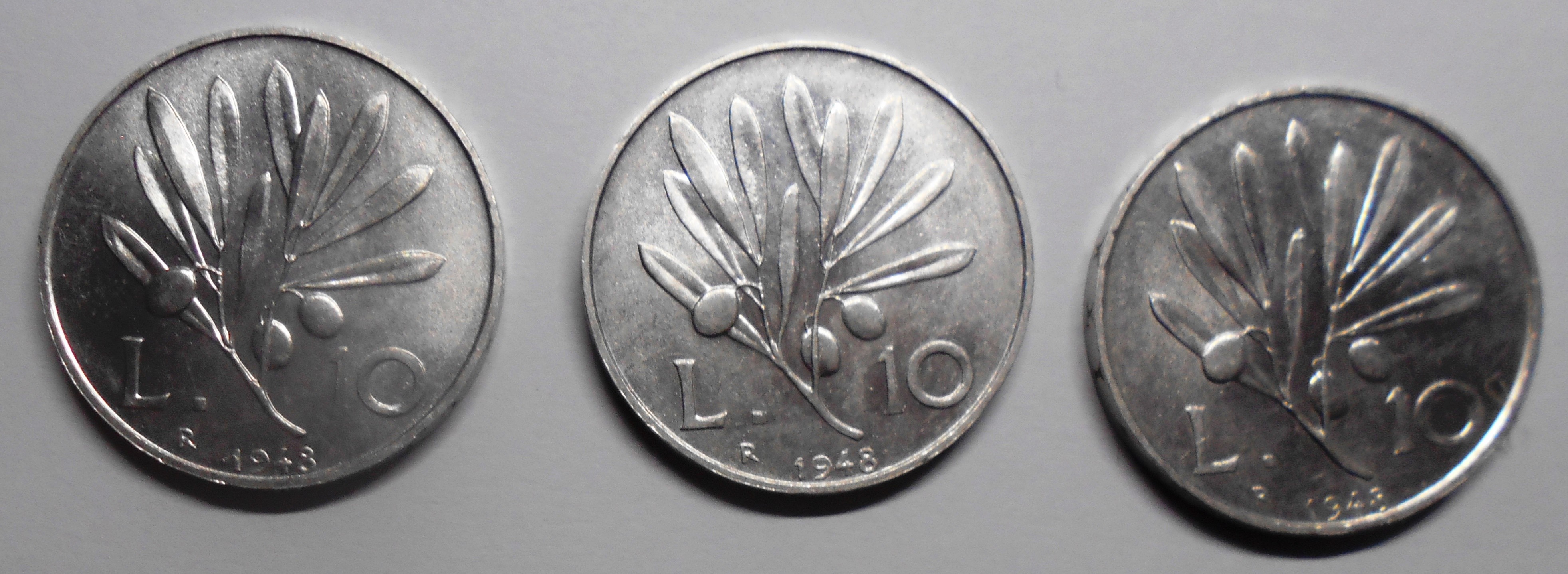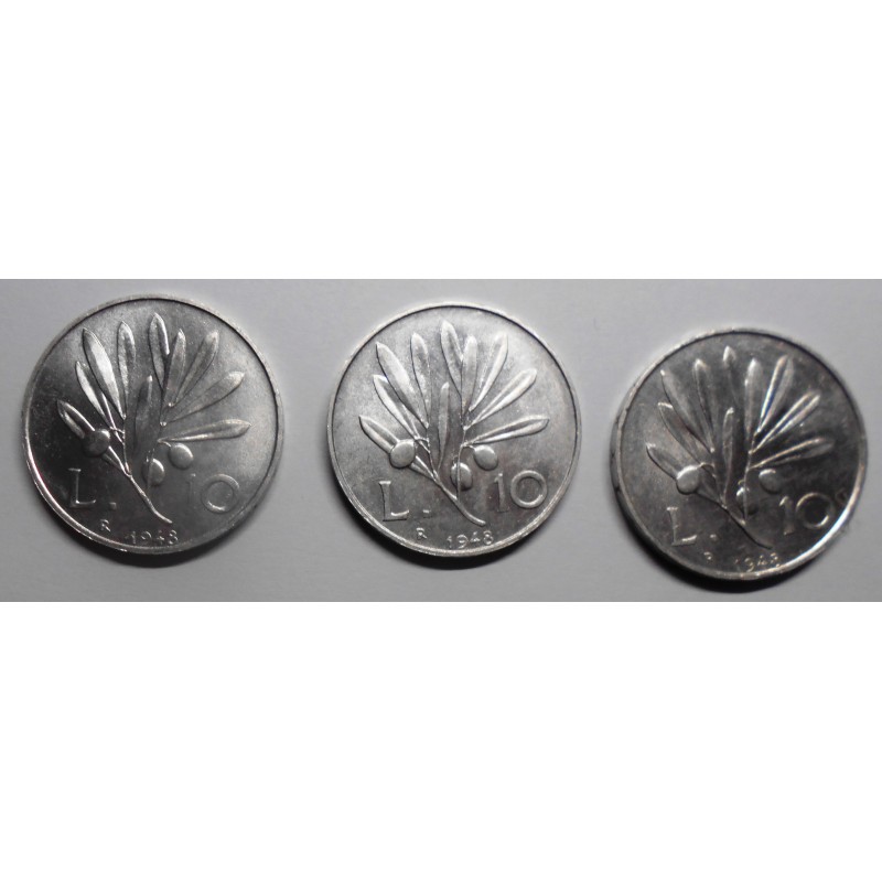 10 Lire 1948 da rotolino in FDC assoluto lotto n.3 pz.