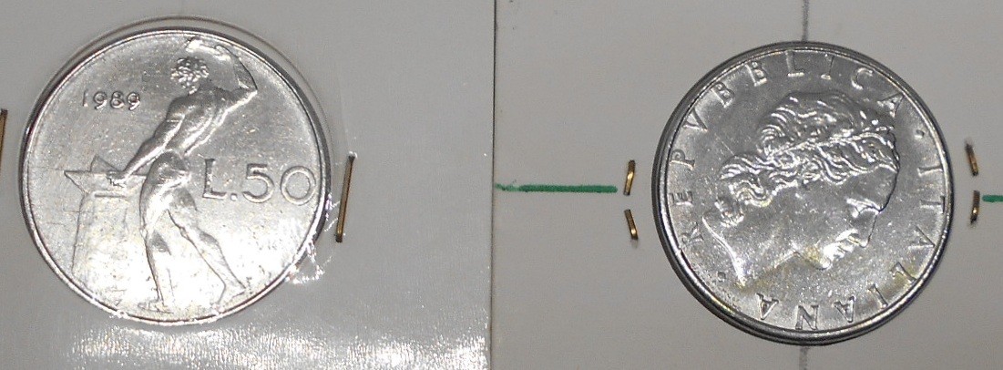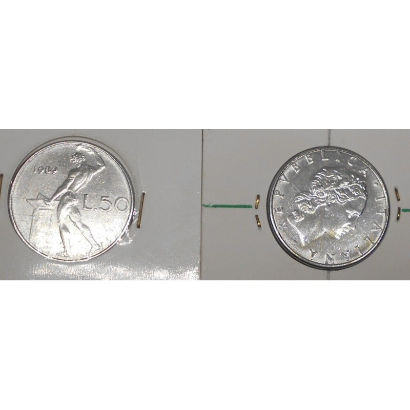 50 Lire 1989 Rovescio ruotato circa 45° dx
