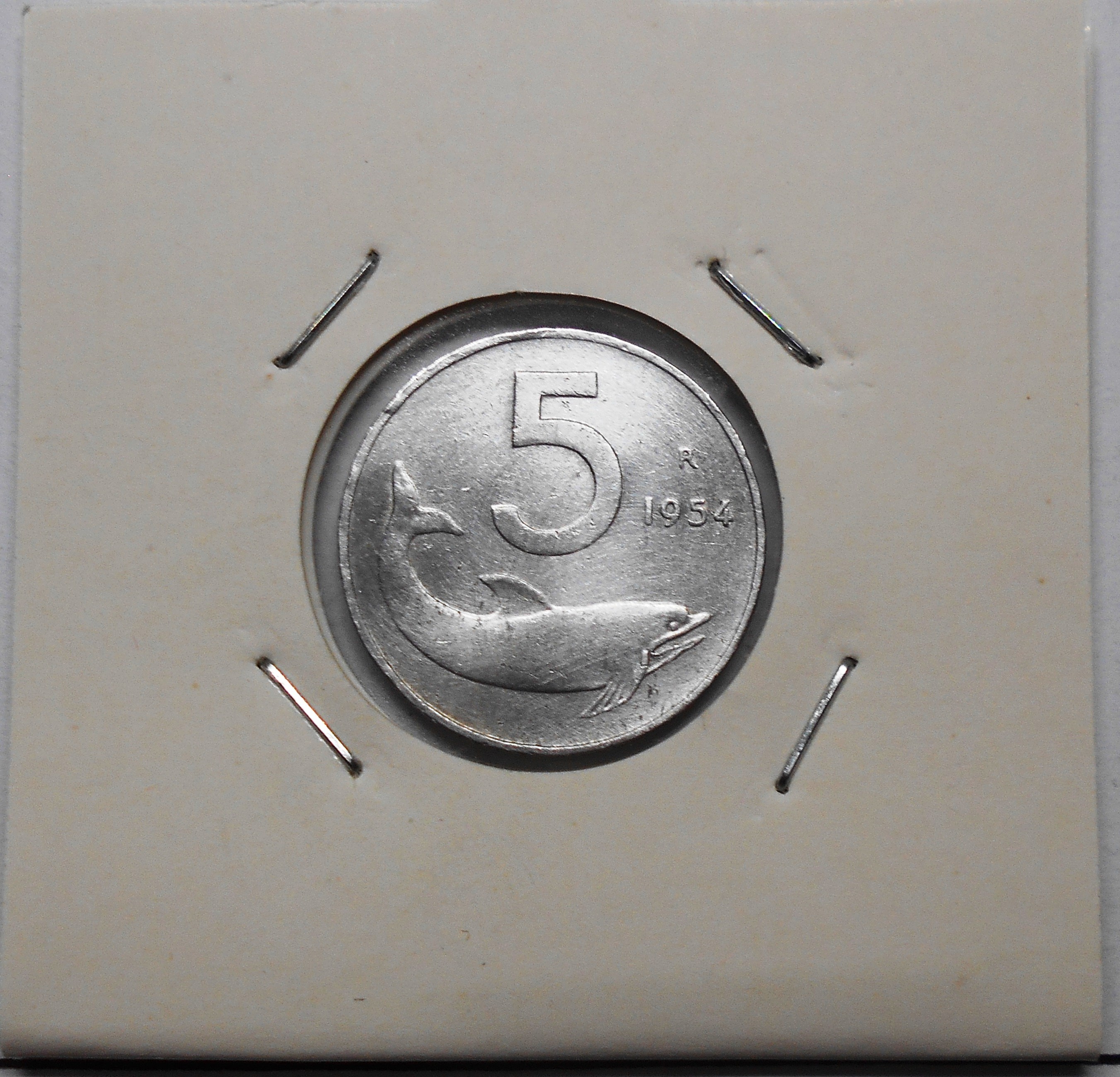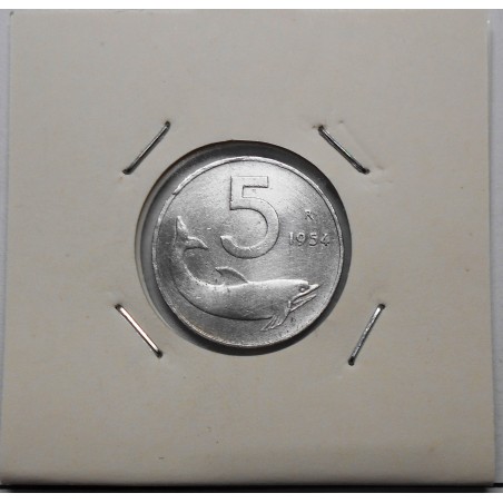 5 Lire 1954 Asse Spostato di circa 35° gradi a sn. molto rara