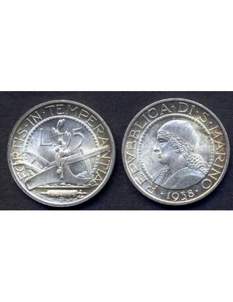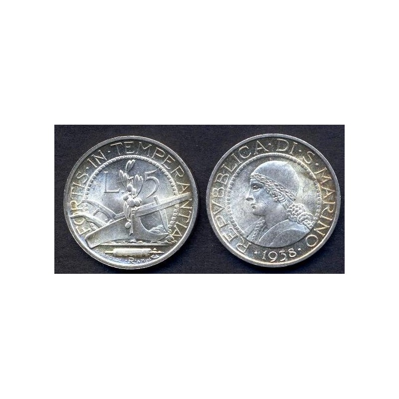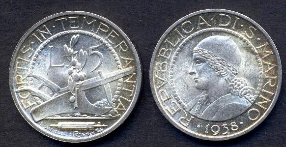SAN MARINO 5 Lire 1938 AG