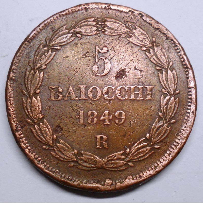 PIO IX 5 Baiocchi 1849 R ANN. IV