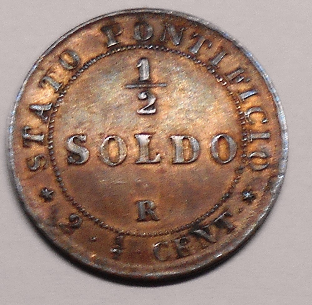 PIO IX 1/2 Soldo 1867 A. XXII