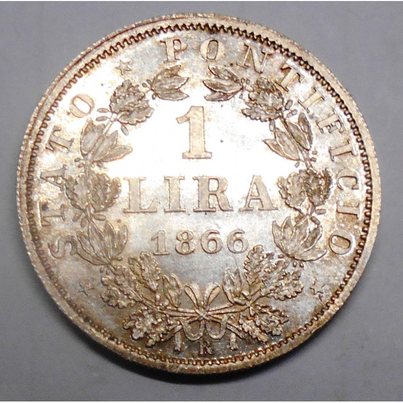 PIO IX 1 Lira 1866 BUSTO GRANDE FDC - AG