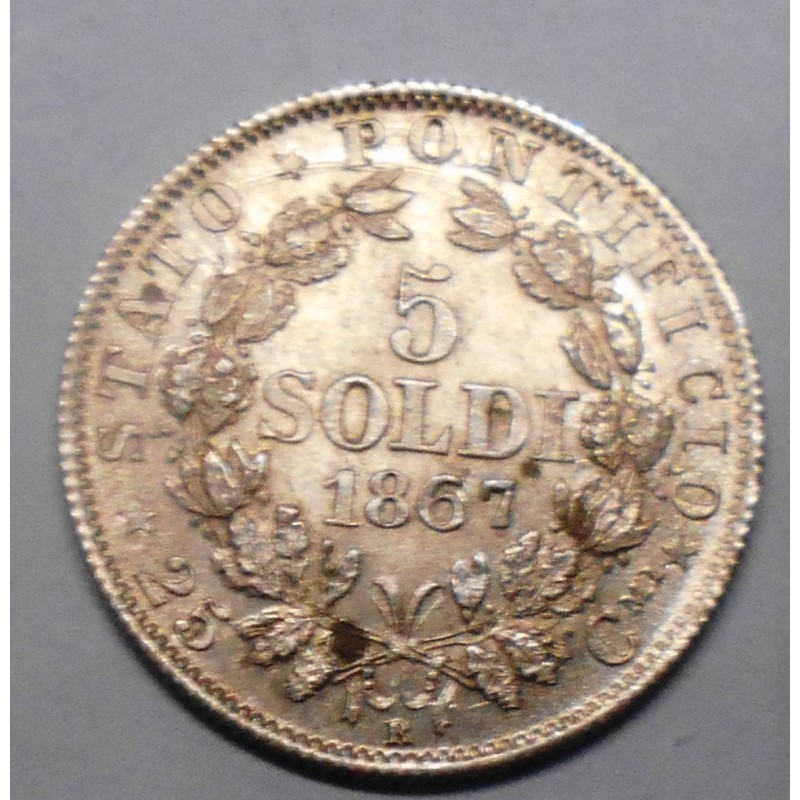 PIO IX 5 Soldi 1867 A.XXI AG