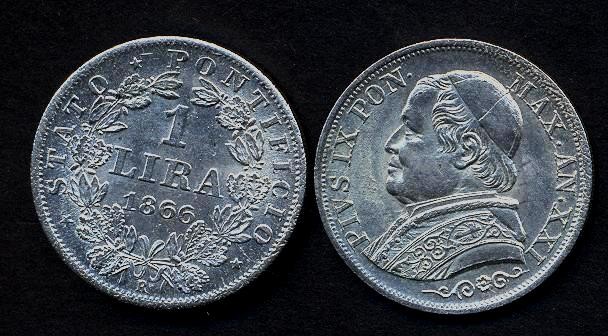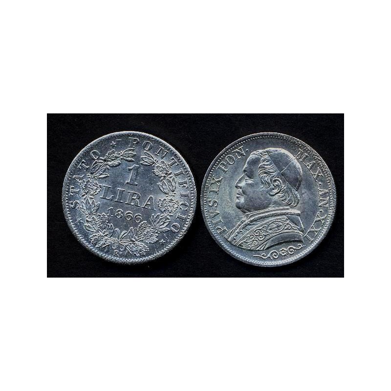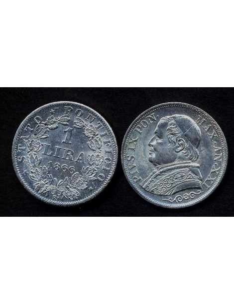 PIO IX 1 Lira 1866 BUSTO GRANDE - AG