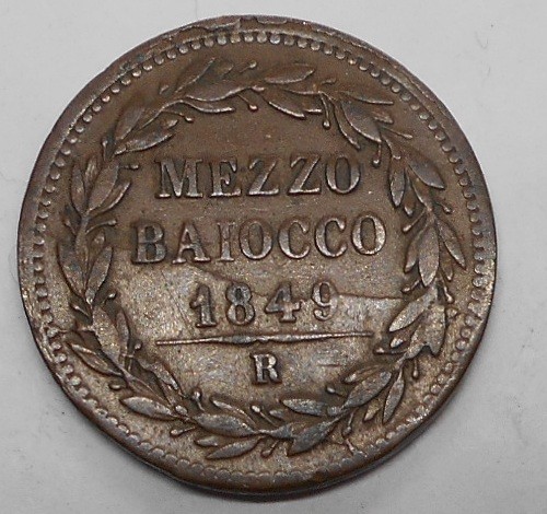 PIO IX 1/2 Baiocco 1849 R AN. IIII