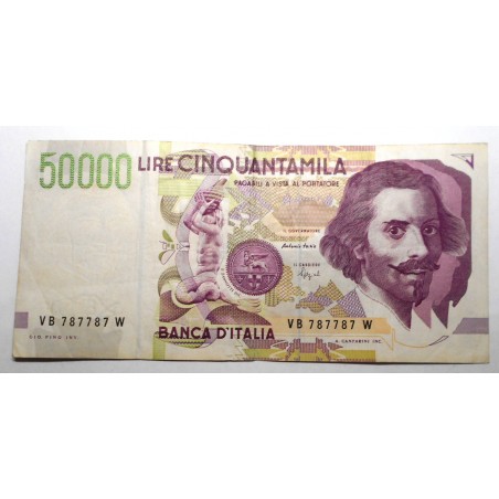 RADAR PALINDROMO 50.000 Lire Bernini 2° Tipo Lettera B