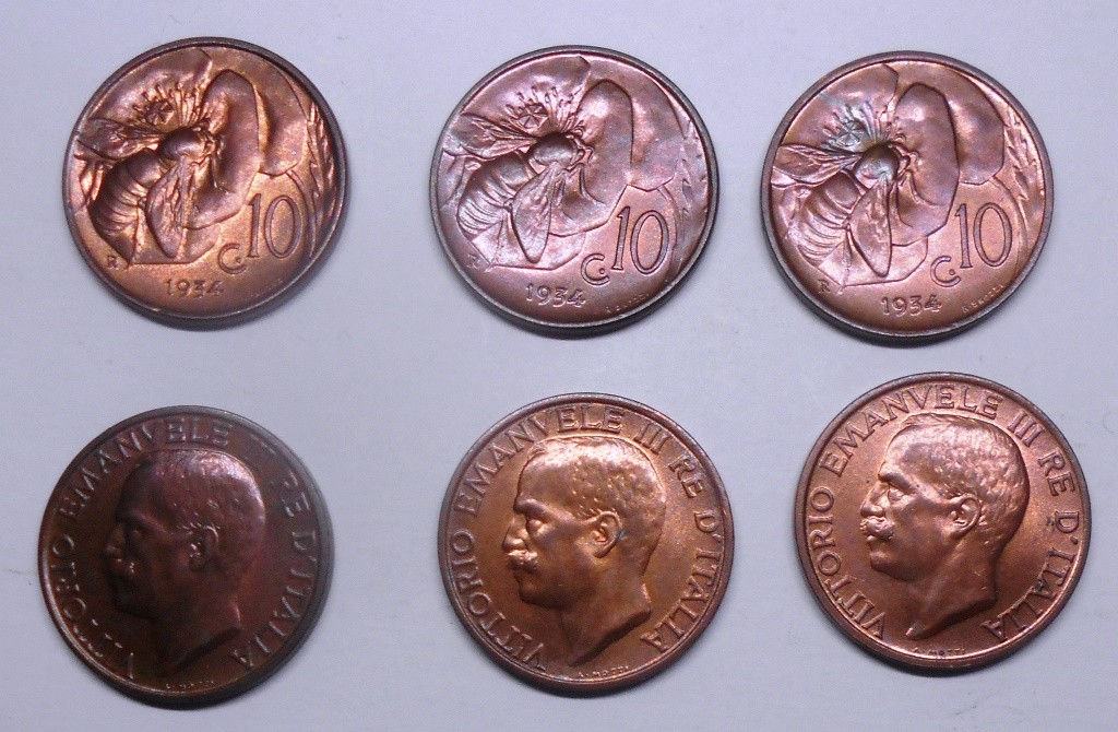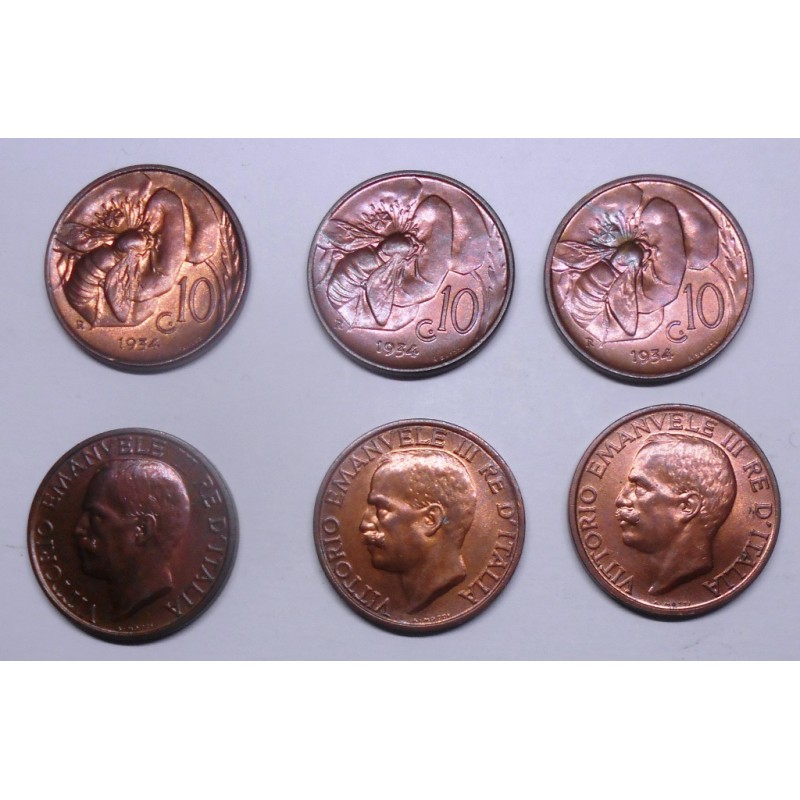 10 Centesimi 1934 rame rosso n.3 pz. FDC