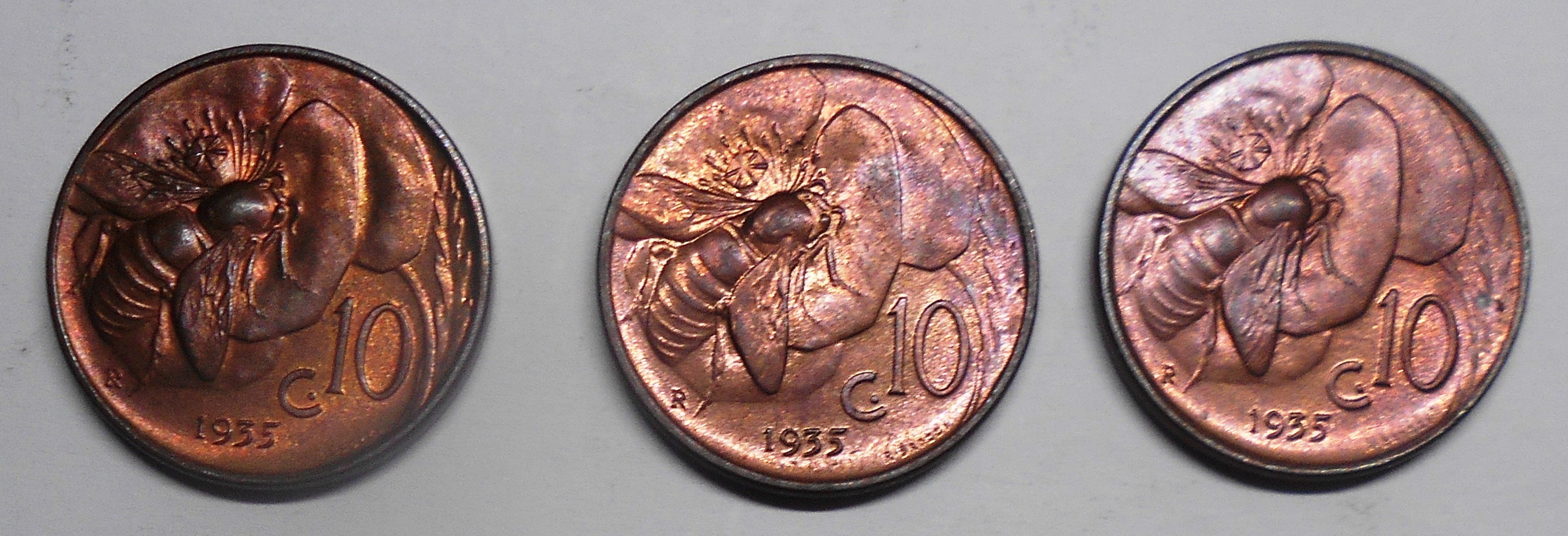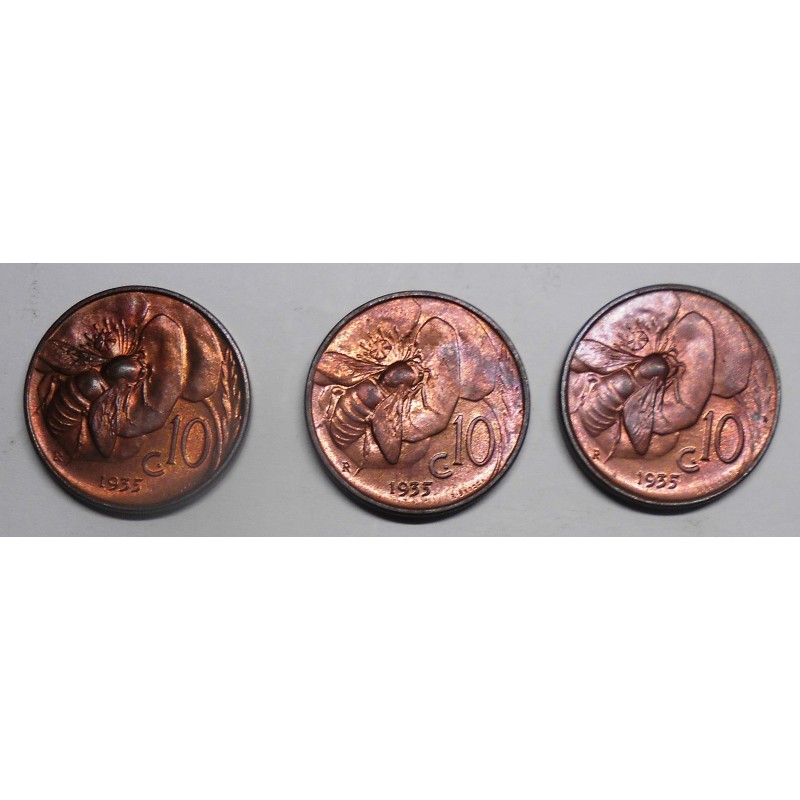 10 Centesimi 1935 rame rosso n.3 pz. FDC