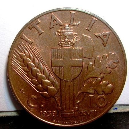 10 Centesimi Impero 1939 rame FDC rame rosso