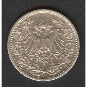 GERMANY EMPIRE 1/2 Mark 1906 F AG