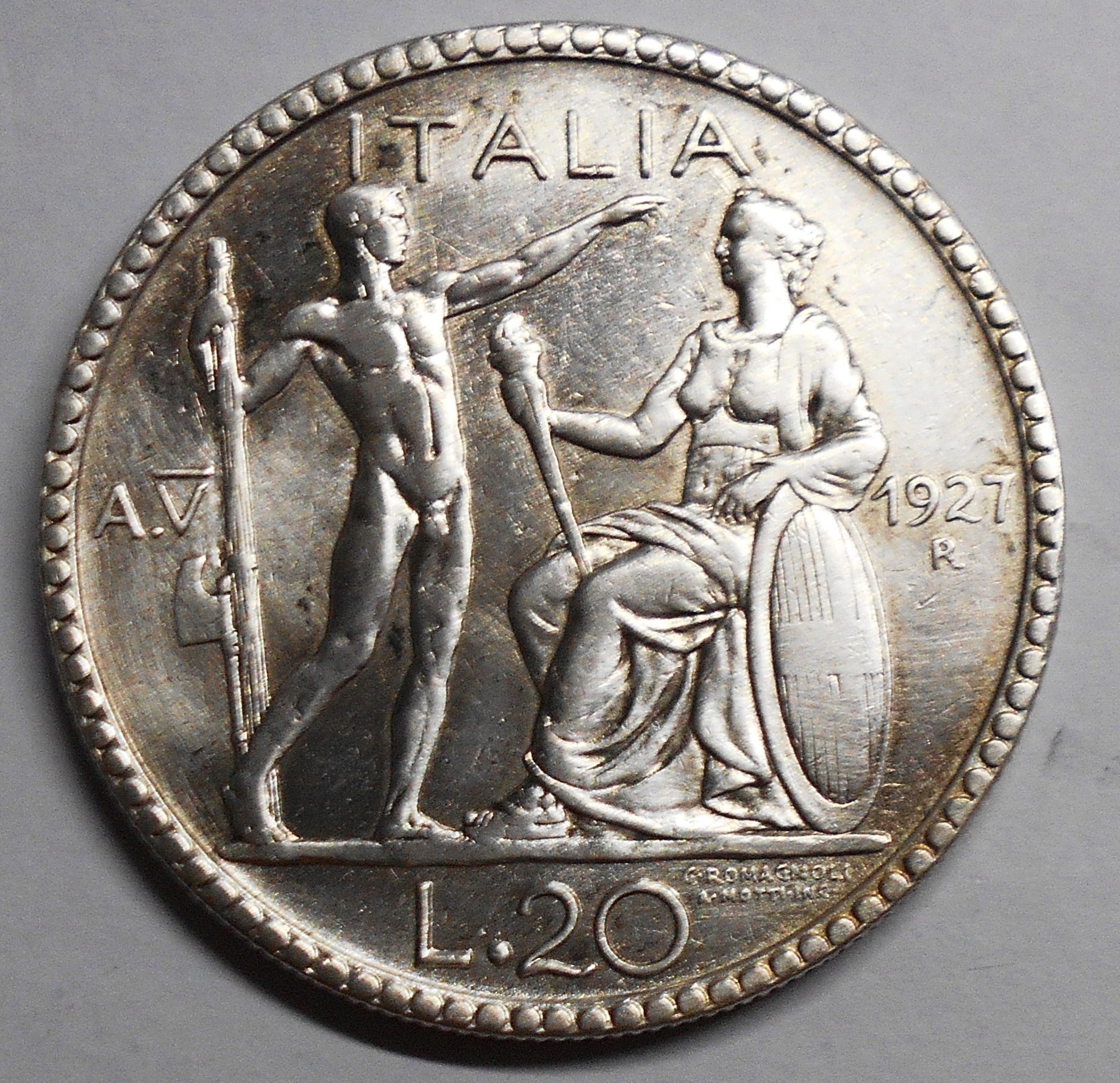 20 Lire LITTORE 1927 originale (tentativo di trasformarla in A.V )